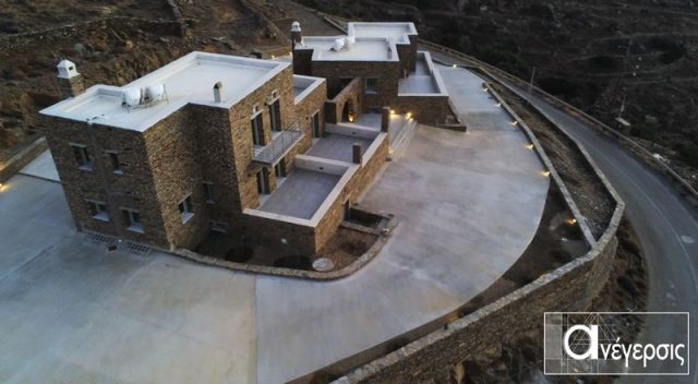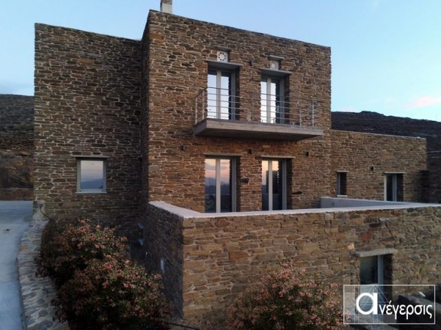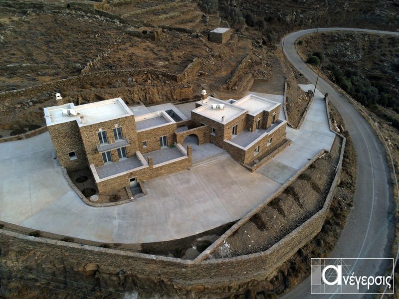 Δύο πέτρινες κατοικίες σχεδιάστηκαν με σκοπό να αφομοιωθούν από το χειροποίητο τηνιακό τοπίο και, όντως, έγιναν ένα με τη φύση της Έξω Μεριάς.